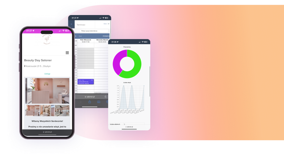 Zarządzaj pracą całego salonu, pilnuj godzin i terminów, tak aby klienci zostali zawsze obsłużeni na czas i w komfortowych warunkach.